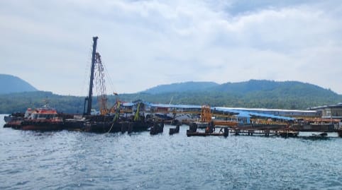 Dari pantauan di lokasi Pelabuhan Balohan hingga kini pekerjaan proyek pemancangan pembuatan dermaga masih dikerjakan meskipun sudah lewat waktu pelaksanaan.