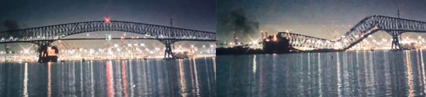 Beberapa rekaman video viral beredar di sejumlah media sosial menunjukkan situasi saat jembatan tersebut mengapung di sungai Baltimore.