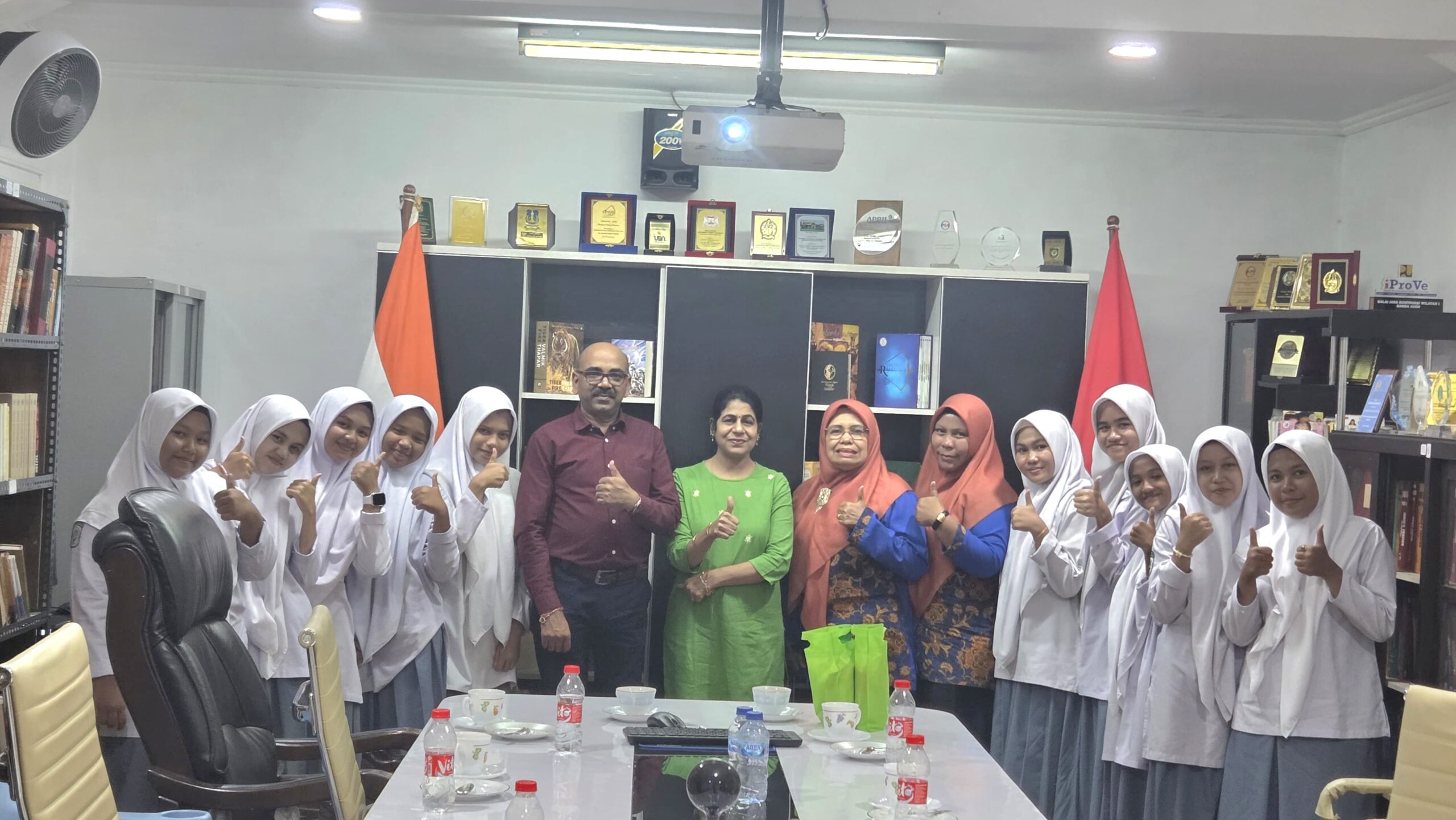 MEDAN (Berita): Konsul Jenderal (Konjen) India di Medan Ravi Shanker Goel dengan senang hati menyambut kepala sekolah, guru dan siswa dari Jurusan Farmasi Sekolah Kejuruan Al Razi Sinar Harapan mengunjungi Kantor Konsulat Jenderal India di Jalan Uskup Agung Sugiopranoto nomor 19 Medan Senin (25/8/2025).