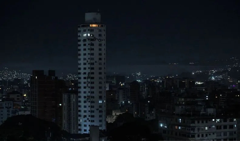 Pemandangan kota yang gelap usai serangan udara berskala besar terhadap Venezuela dan pemimpinnya oleh Amerika Serikat di Caracas, Venezuela, Sabtu (3/1/2026). (ant/Xinhua)