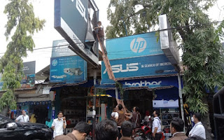 Amatan wartawan, objek rekleme yang dibongkar oleh tim gabungan Dinas BPPRD dan Satpol-PP Kota Medan, yang berbeda didepan Toko Wahana Fajar, Toko Utama Jaya, Mandiri Jaya dan toko elektronik lainya. Plank reklame yang dibongkar, keseluruhannya milik vendor elektronik “Asus”. (zili)