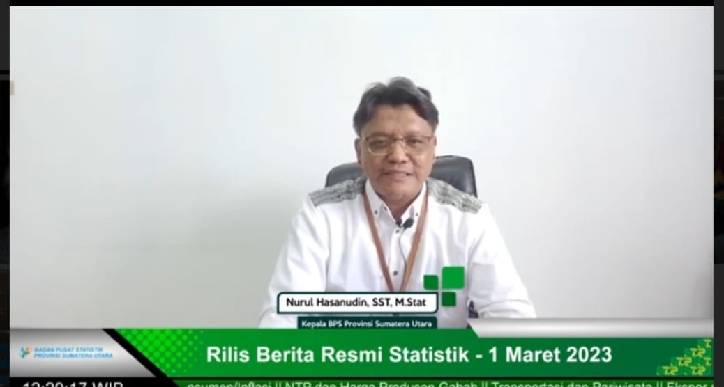 Kepala Badan Pusat Statistik (BPS) Sumatera Utara Nurul Hasanudin mengatakan hal itu pada Rilis Berita Resmi Statistik yang digelar secara virtual Senin (3/4/2023).