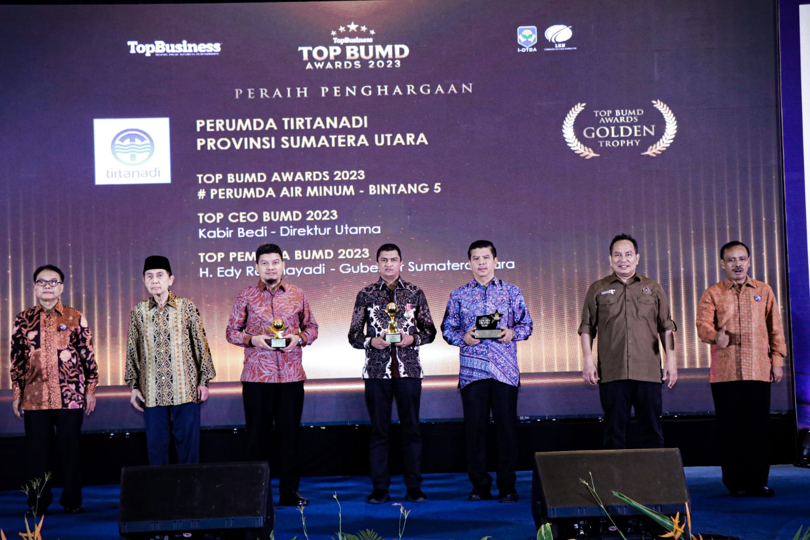 MEDAN (Berita): Gubernur Sumatera Utara Edy Rahmayadi meraih Top Pembina dan Perumda Tirtanadi berhasil meraih bintang 5 pada acara Top Badan Usaha Milik Daerah (BUMD) berlangsung di Jakarta Rabu (5/4/2023) malam.