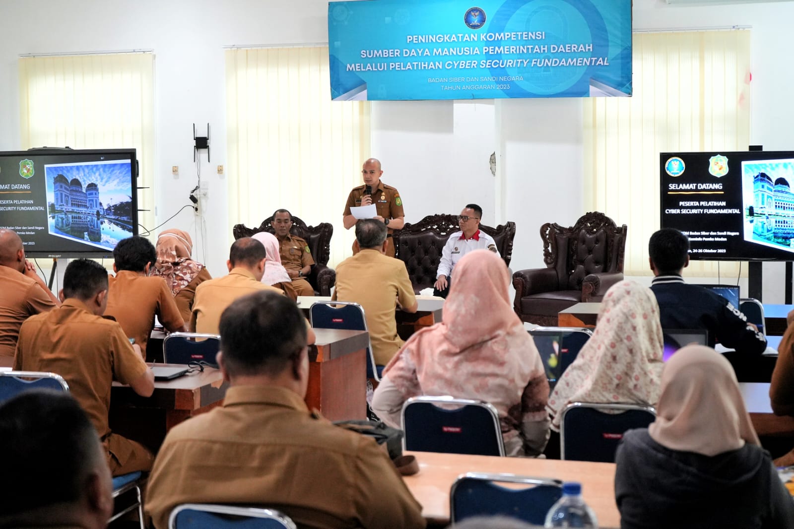 MEDAN (Berita): Dinas Kominfo Kota Medan berkolaborasi dengan Badan Siber dan Sandi Negara (BSSN) menggelar kegiatan peningkatan kompetensi sumber daya manusia Pemerintah Daerah melalui Pelatihan Cyber Security Fundamental bertempat di Aula Kantor Dinas Kominfo Medan, Selasa (24/10).