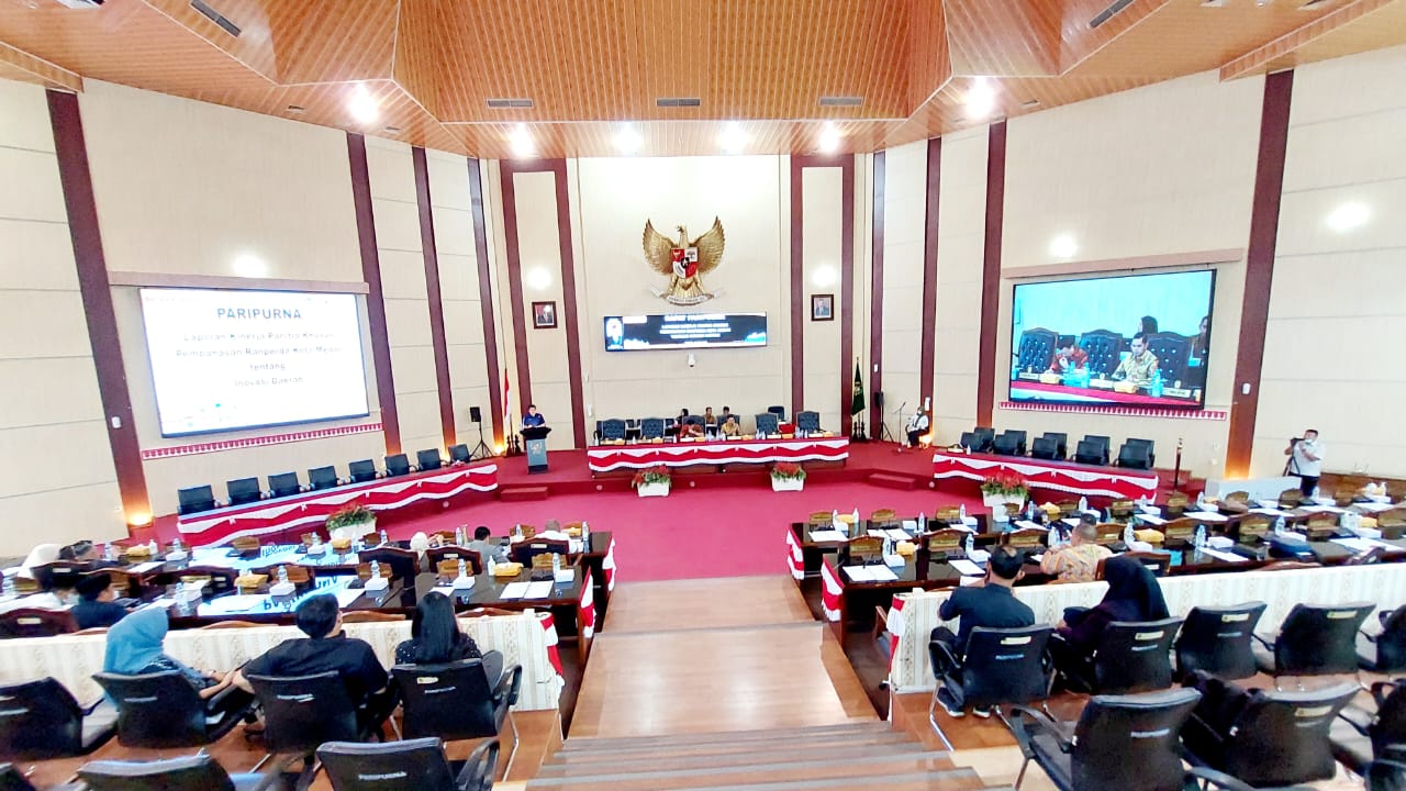 Kota Medan tentang Inovasi Daerah di gedung, Senin (22/5/2023). Dalam rapat paripurna disepakati perpanjangan waktu untuk masa kerja Pansus pembahasan Ranperda.
