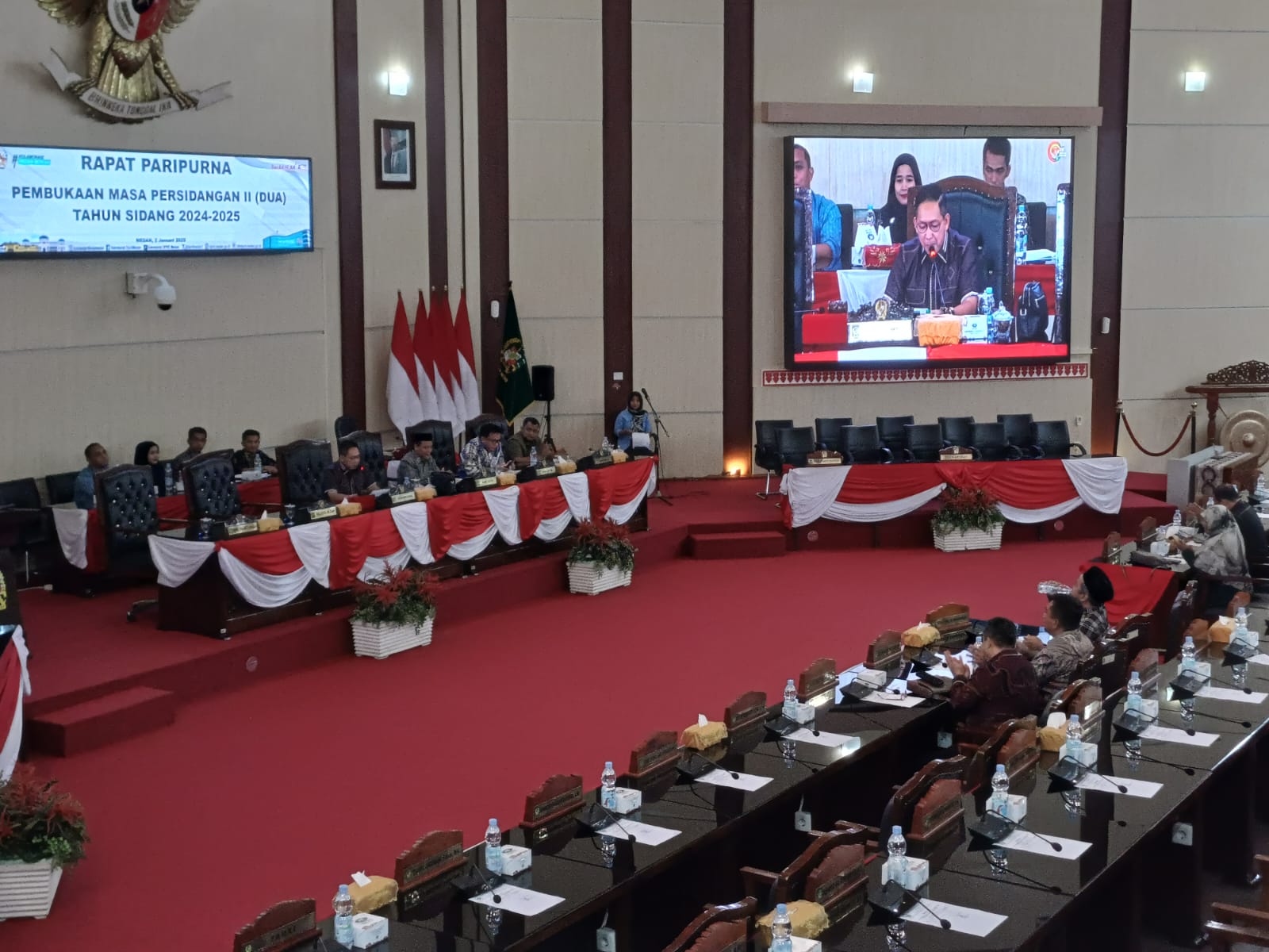MEDAN (Berita): DPRD Kota Medan menggelar Rapat Paripurna Pembukaan Masa Persidangan II Tahun Sidang 2024-2025 di gedung DPRD Kota Medan, Jalan Kapten Maulana Lubis nomor 1, Kelurahan Petisah Tengah, Kecamatan Medan Petisah, Kamis (2/1/2025).