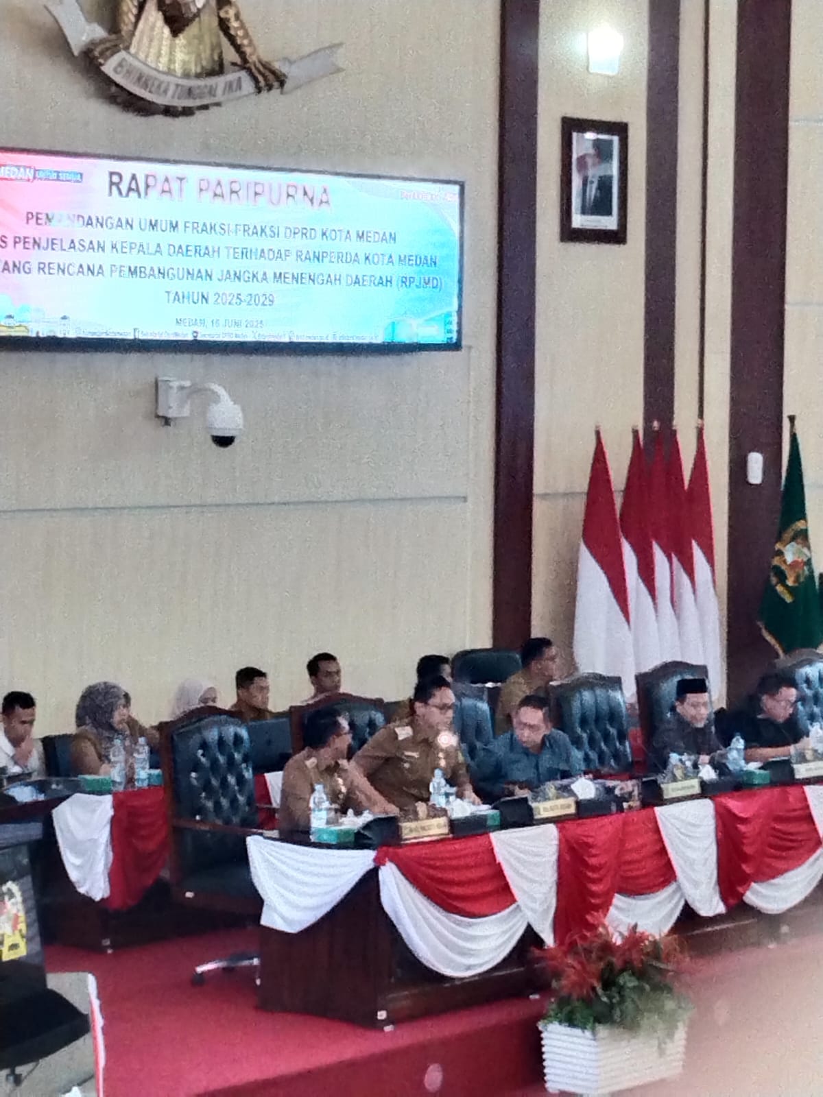 Rapat dipimpin Ketua DPRD Medan Drs Wong Cun Sen didampingi Wakil Ketua Zulkarnaen, Rajudin Sagala. Ikut dalam rapat anggota DPRD Medan dan persidangan difasilitasi Sekwan DPRD Medan M Ali Sipahutar bersama Kabag Persidangan Andres Willy Simanjuntak. Hadir juga Walikota Medan Rico Tri Putra Bayu Waas, Wakil Walikota Medan Zakiyuddin Harahap dan para OPD Pemko Medan. (MZ)