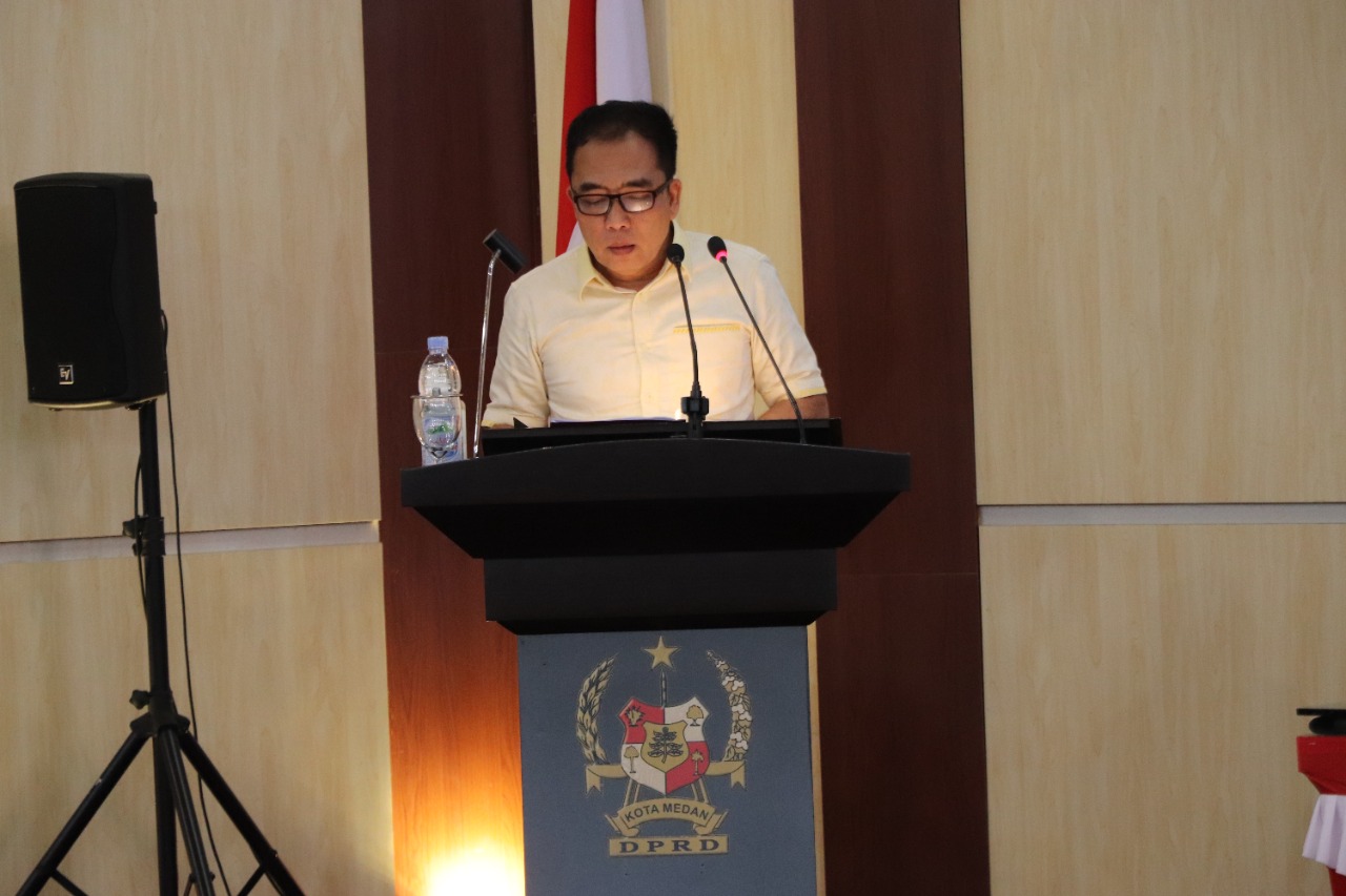 Rapat paripurna dipimpin Ketua DPRD Medan, Hasyim SE didampingi Wakil Ketua H Ihwan Ritonga SE, Rajudin Sagala, T Bahrumsyah dan para anggota dewan. Hadir juga Sekwan DPRD Medan M Ali Sipahutar, Plt Kabag Persidangan Andreas Willy Simanjuntak. Sedangkan dari Pemko Medan dihadiri Walikota Medan M Bobby Afif Nasution, Wakil Walikota Aulia Rachman, Sekda Pemko Medan Wiria Alrachman dan para pimpinan OPD Pemko Medan serta perwakilan Fokompinda Kota Medan.