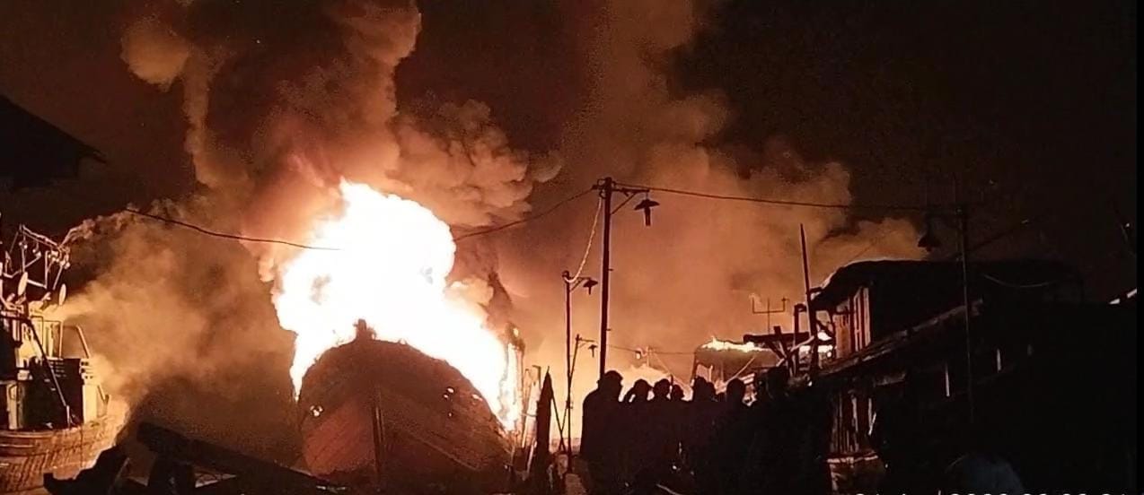 Akibatnya, Tujuh unit kapal pukat trawl ludes dilalap si jago merah sekaligus meluluhlantakkan seluruh bangunan yang ada di gudang yang dijadikan sebagai tempat penyimpanan dan sandarnya kapal-kapal pukat trawl tersebut.