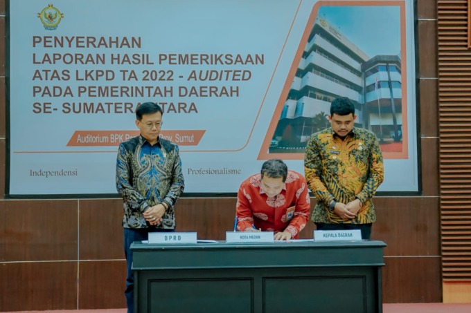 Hal ini terungkap saat Bobby Nasution menerima Laporan Hasil Pemeriksaan (LHP) BPK RI Perwakilan Sumut atas Audit Rinci LKPD Kota Medan Tahun Anggaran 2022 yang diserahkan Kepala Perwakilan BPK Sumut Eydu Oktain Panjaitan di Auditorium BPK RI Perwakilan Sumut, Kamis (25/5).