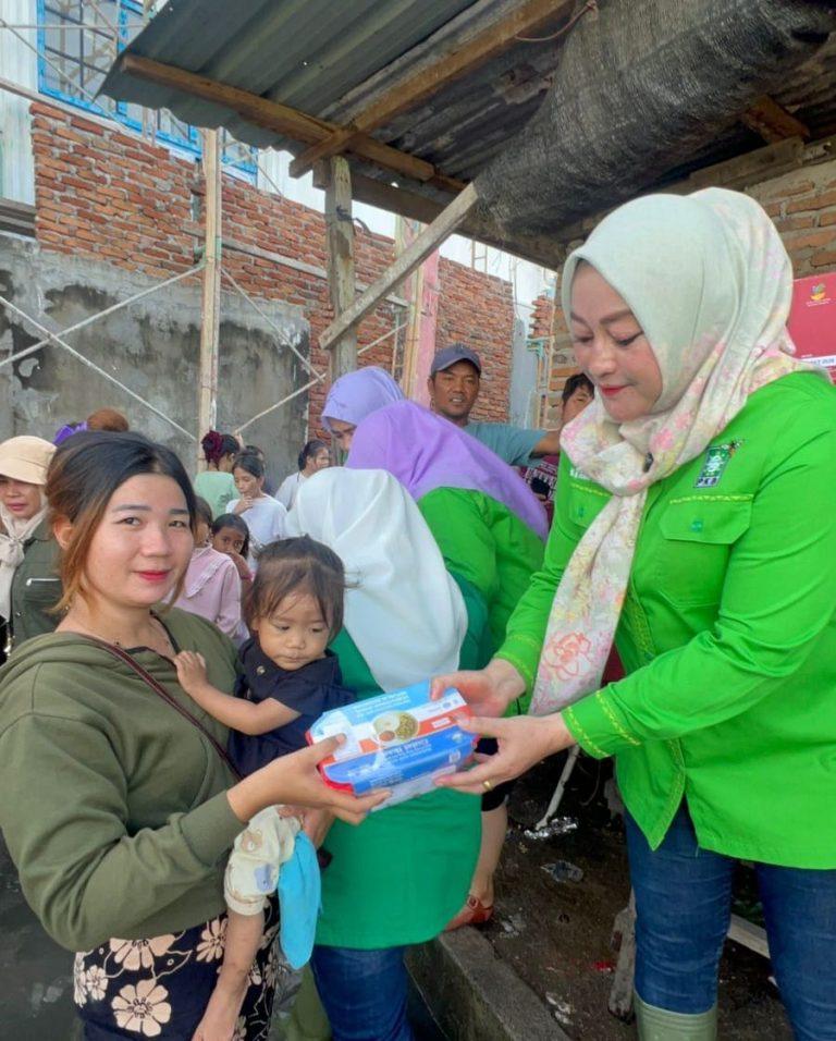 Roma Uli Silalahi asal Partai Kebangkitan Bangsa (PKB) itu bersama suaminya gerak cepat menyajikan makanan dan bahan lainnya langsung mengantar makanan ke rumah rumah warga di Pasar 4 dan 5 Medan Marelan.