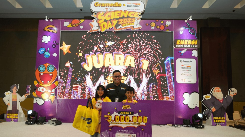 Dukungan penuh Danamon bersama para sponsor menjadi bagian penting dalam terselenggaranya kegiatan ini. Sinergi antara Gramedia dan Danamon ini tidak hanya menciptakan momentum pembelajaran yang menyenangkan bagi anak-anak, tetapi juga memperkuat kolaborasi lintas pihak dalam menumbuhkan minat dan kecintaan terhadap sains sejak usia dini.