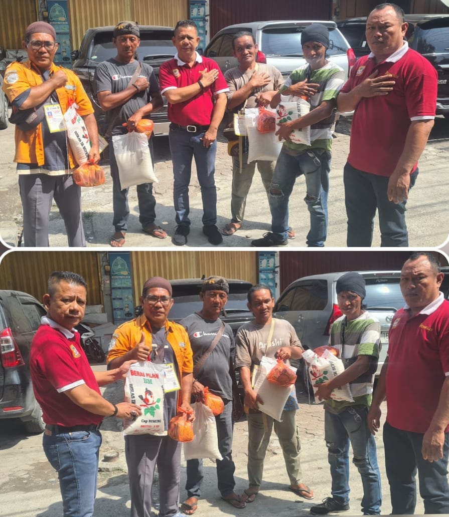 MEDAN (Berita) : Ketua Persatuan wartawan (Pewarta) Polrestabes Medan Chairum Lubis,SH melaksanakan Jumat Barokah (28/7/2023) di empat kawasan di Kota Medan dengan sasaran juru parkir (Jukir).