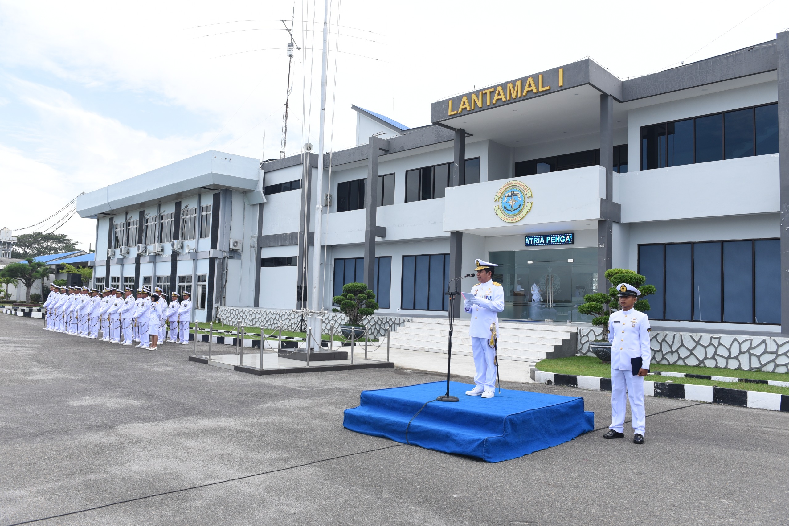 BELAWAN (Berita): Komandan Pangkalan Utama TNI Angkatan Laut I (Danlantamal I) Laksamana Pertama TNI Johanes Djanarko Wibowo diwakili Kaotmilti I Medan Laksamana Pertama TNI Efendi Maruapey, SH, MH, memimpin Upacara Hari Jadi ke-78 TNI Angkatan Laut Tahun 2023 di Lapangan Apel Mako Lantamal I Jl. Serma Hanafiah No 01, Belawan, Medan, Senin (11/9).