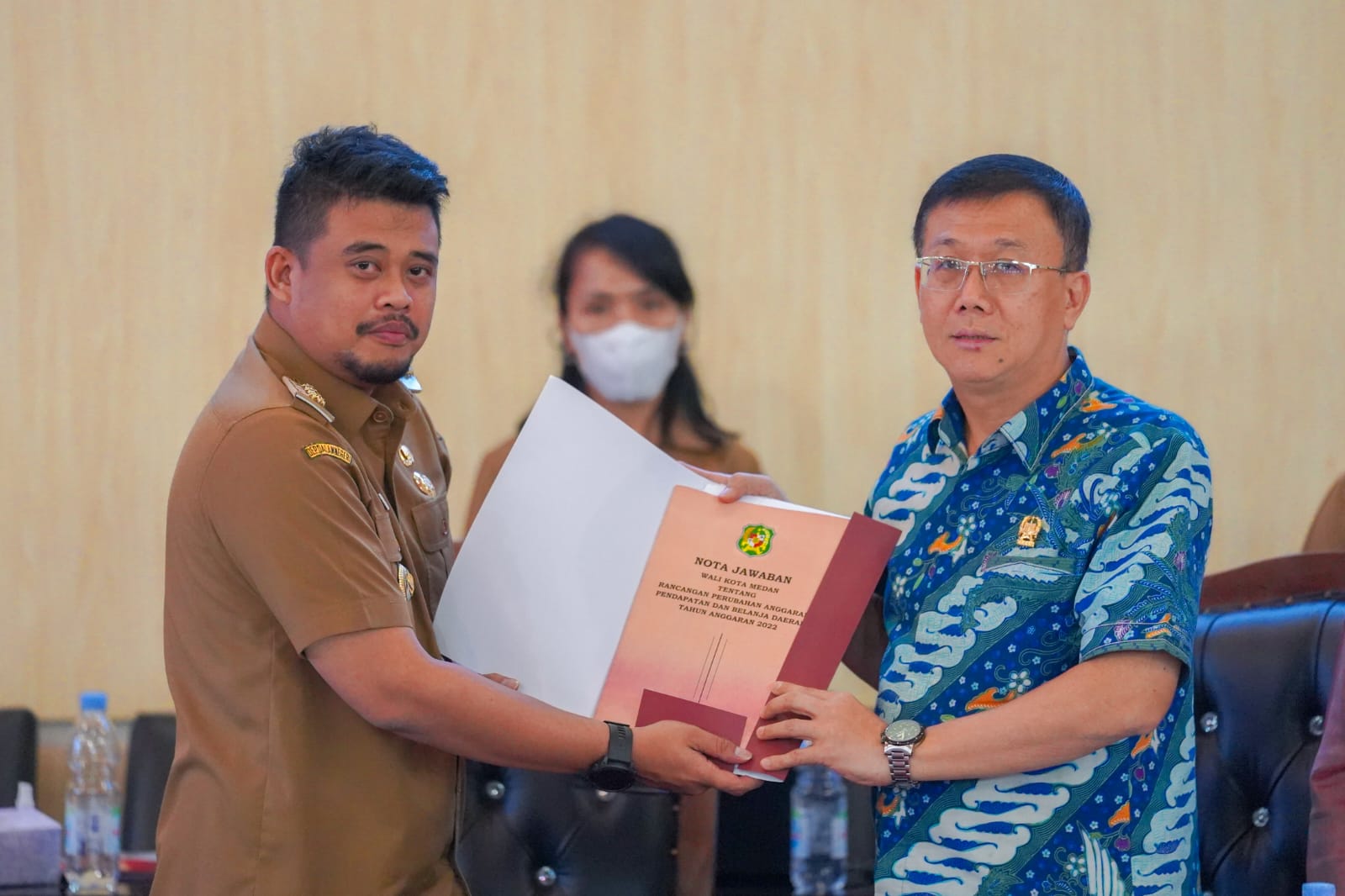 Setelah itu orang nomor satu di Pemko Medan itu menyerahkan Nota Jawaban Wali Kota Medan tentang Rancangan P-APBND TA 2022 kepada Ketua DPRD Medan. (MZ)