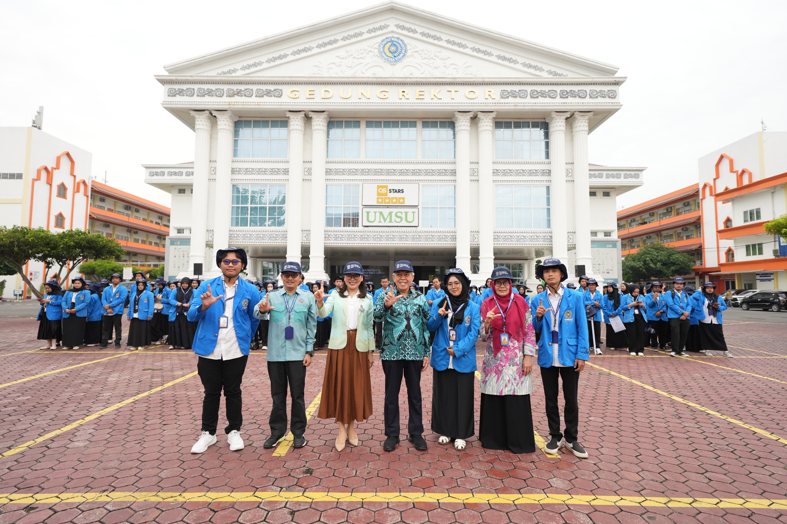 Upacara pelepasan berlangsung khidmat di kampus Jalan Mukhtar Basri Medan, Kamis (28/8/2025). Lagu Indonesia Raya dan Mars Muhammadiyah mengiringi suasana, sebelum atribut KKN secara resmi dikenakan kepada perwakilan mahasiswa.