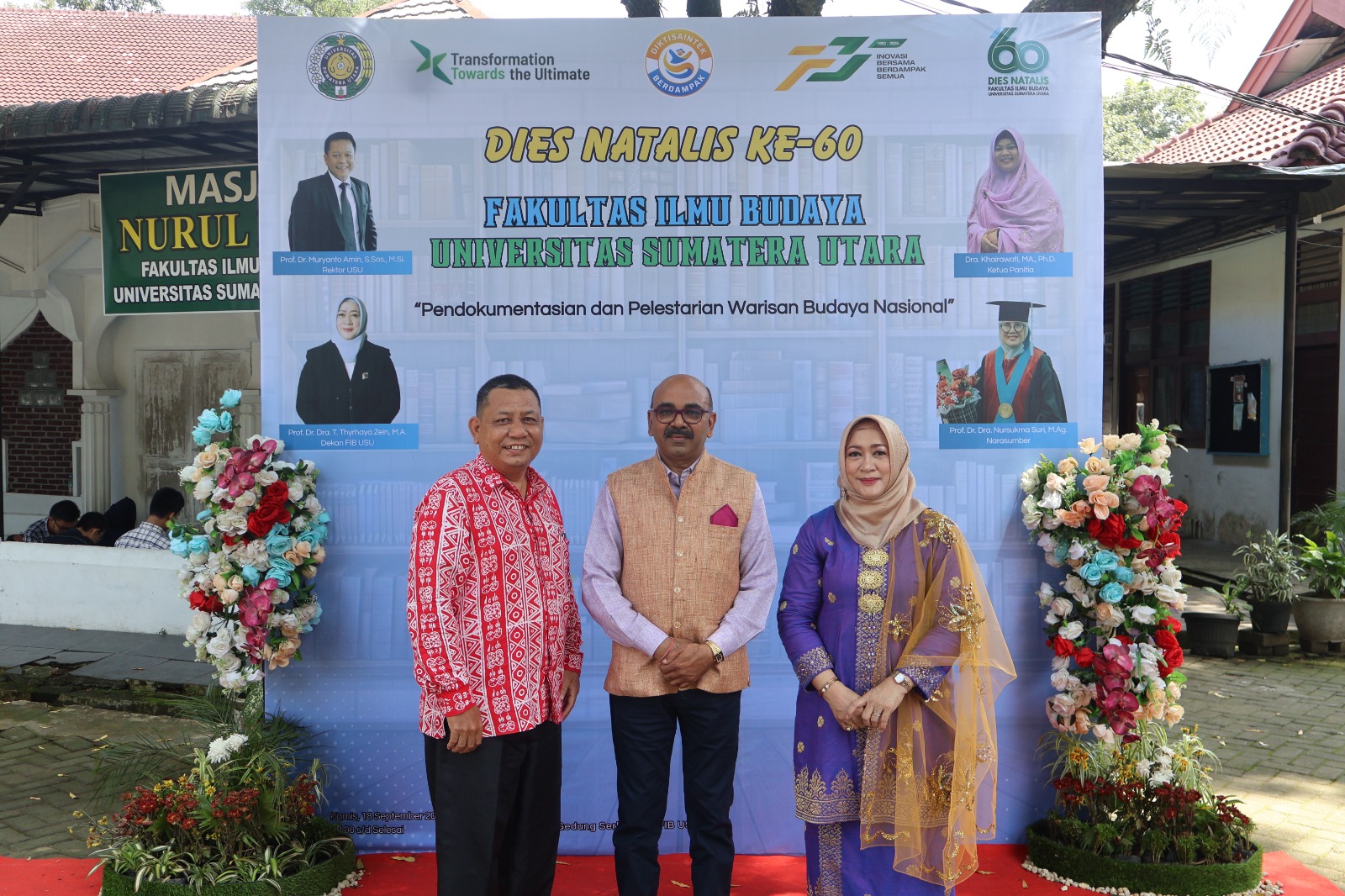 MEDAN (Berita): Konsul Jenderal India di Medan, Yang Mulia Ravi Shanker Goel, menghadiri acara utama peringatan 60 tahun Fakultas Ilmu Budaya di Universitas Sumatera Utara (USU) Kamis (18/9/2025).