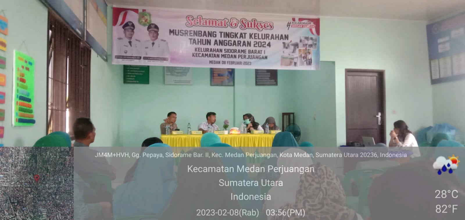 MEDAN (Berita): Lurah Sidorame Barat 1 Yogi Prayoga SP SE membuka musyawarah rencana pembangunan ( musrenbang ) Kelurahan Sidorame Barat 1 tahun 2024, Rabu (8/2/2023) di Kantor Lurah Sidorame Barat 1 Jl. Pelita 3 Gg. Pepaya No 9 Medan.