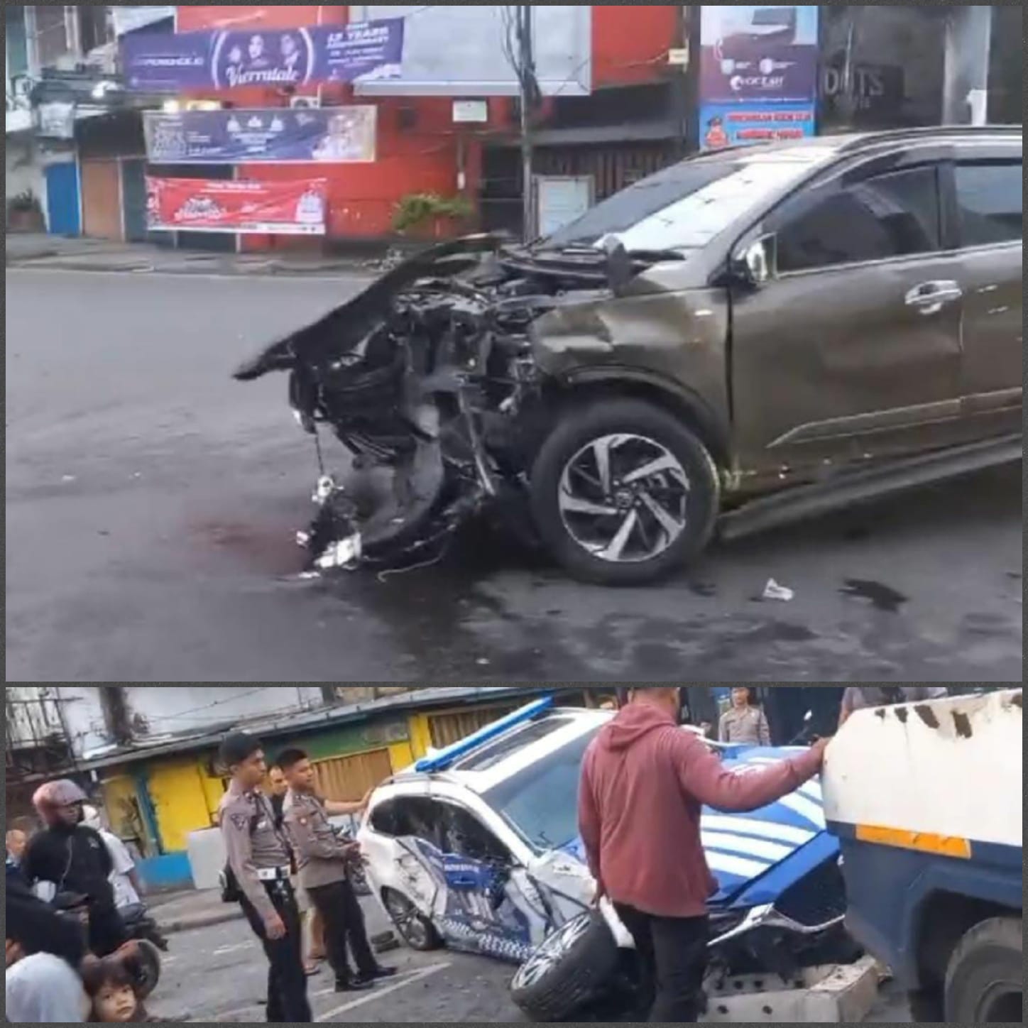 Berita Sore/Ist Mobil Polantas dan Minibus Terrios sama-sama ringsek setelah terlibat tabrakan di simpang Jl. Brigjen Katamso Jalan Juanda Medan, Rabu (26/6/2024).