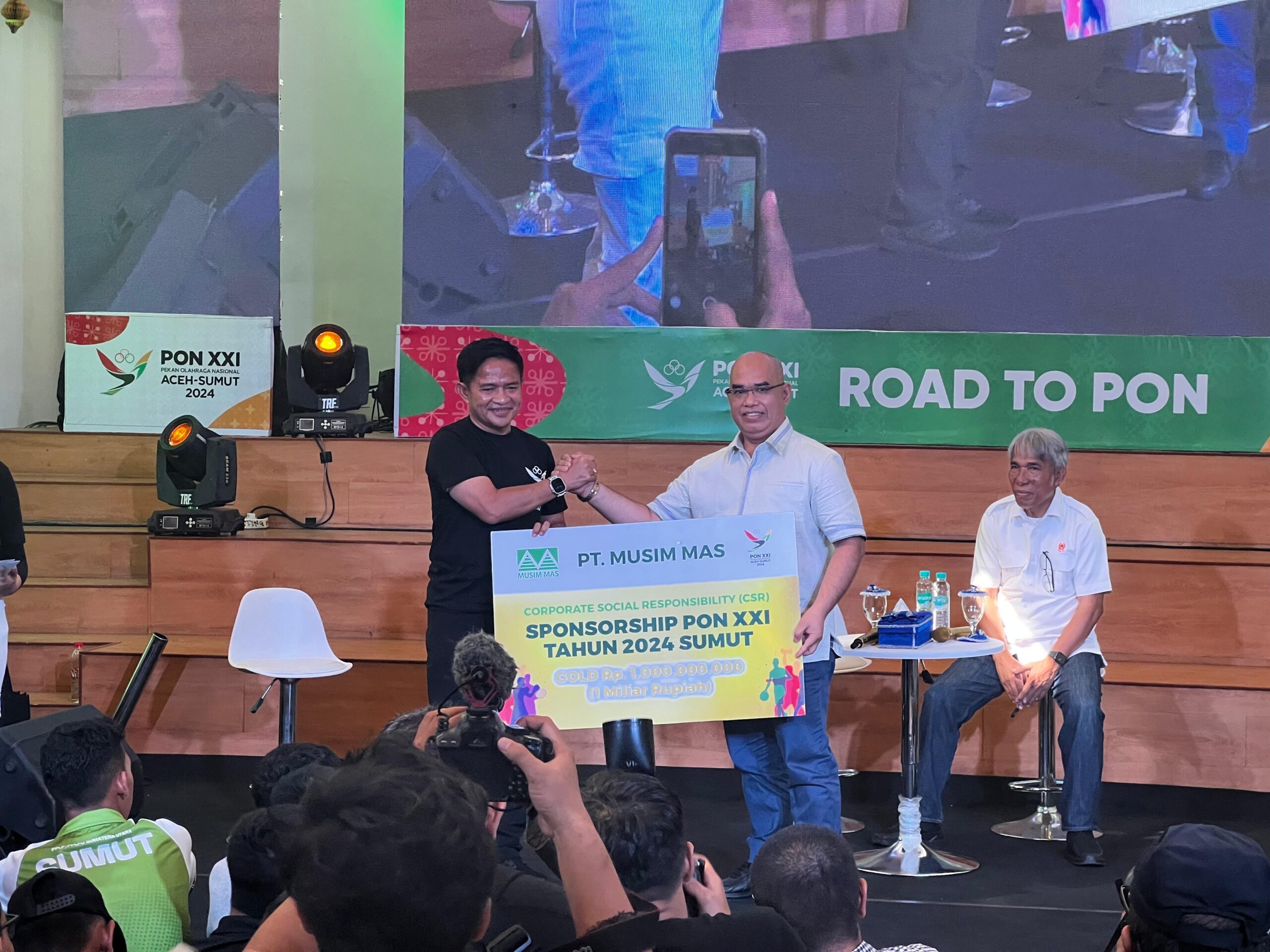 MEDAN (Berita): Musim Mas menunjukkan komitmennya untuk menyukseskan acara Pekan Olahraga Nasional (PON) XXI Aceh-Sumut 2024 dengan memberikan dana dukungan sebesar Rp1 miliar.