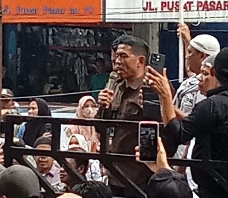 Demontrasi itu dilakukan oleh pedagang Pusat Pasar yang menolak dilakukannya revitalisasi. Mereka juga mengaku tidak pernah dilibatkan dalam proses pembahasan revitalisasi.