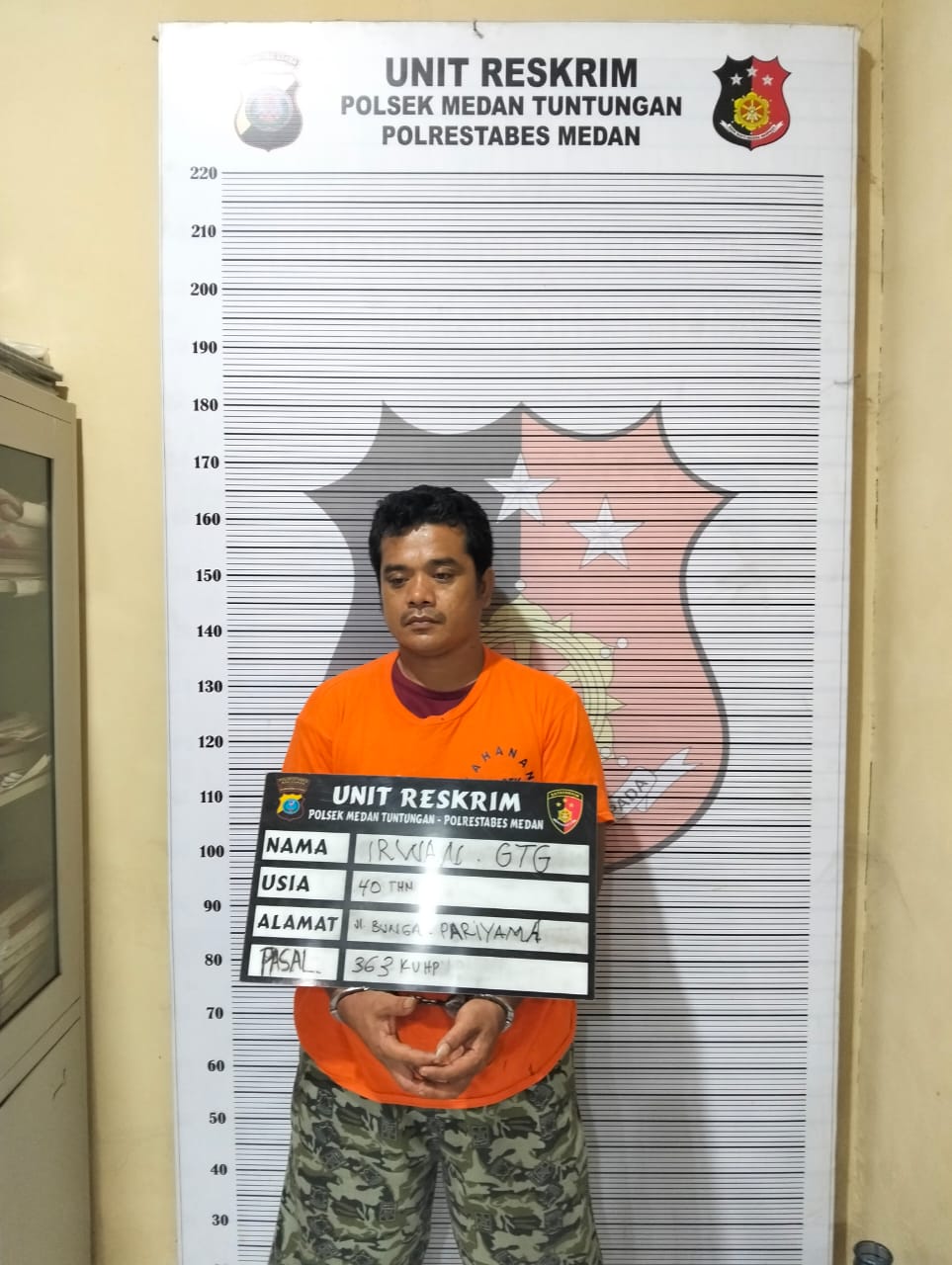 Kapolsek Medan Tuntungan Iptu Syawal Sitepu melalui Kanit Reskrim Iptu Ombrin Siallagan.SH mengatakan bahwa pelaku di tangkap berdasarkan laporan korbannya