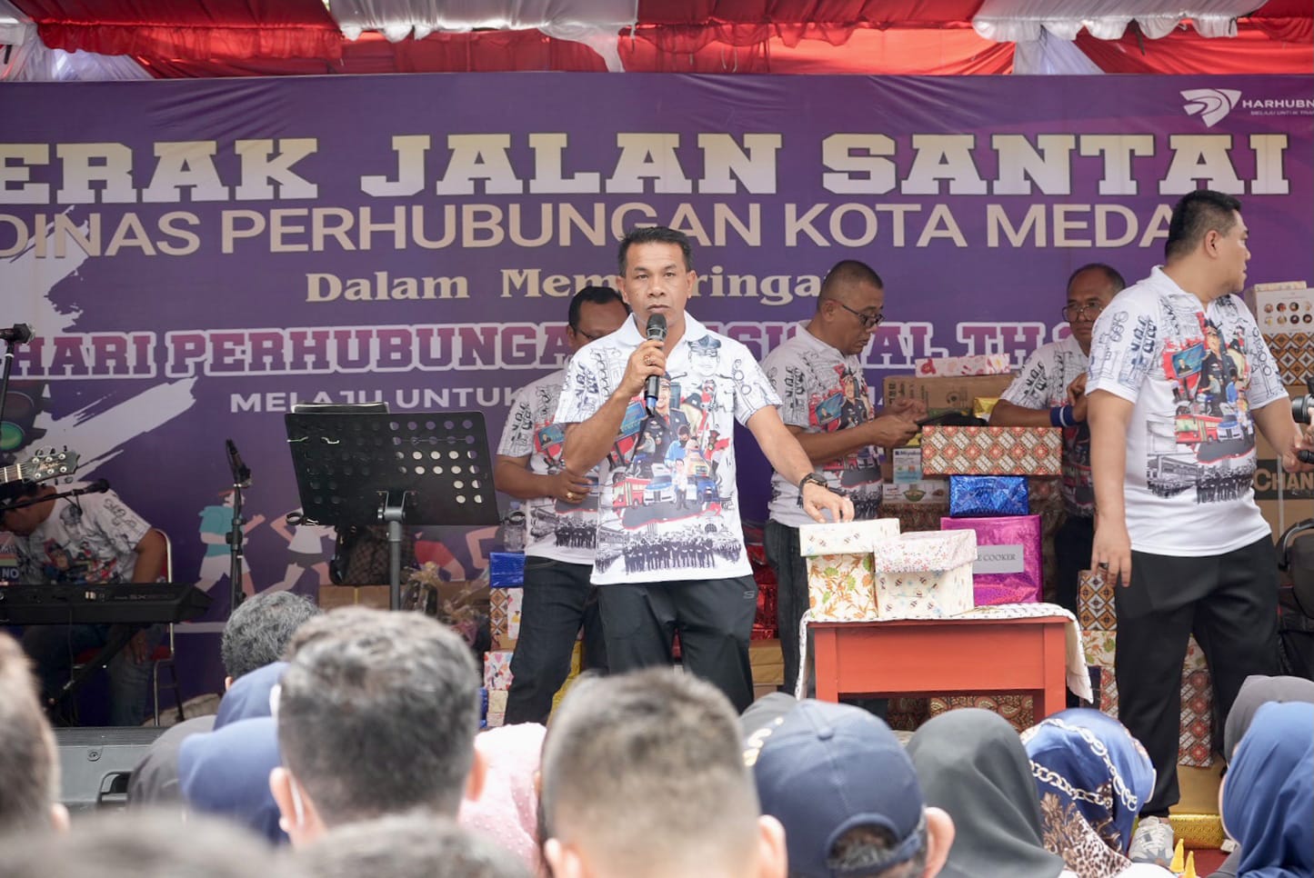 MEDAN (Berita): Seribuan pegawai dan keluarga Dinas Perhubungan (Dishub) Medan mengikuti Gerak Jalan Santai Bersama Keluarga, Minggu (15/10). Perhelatan yang disemarakkan doorprize dengan berbagai hadiah menarik antara lain ponsel, sepeda gunung, sepeda listrik, televisi, dan sepeda motor itu puncak peringatan Hari Perhubungan Nasional (Harhubnas) Tahun 2023 yang digelar Disub Medan.