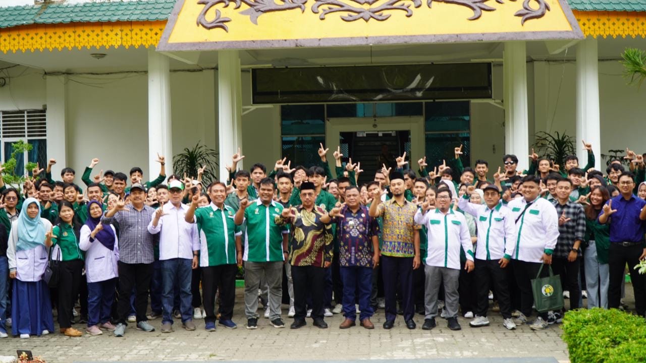 LANGKAT (Berita): Pj Bupati Kabupaten Langkat H.M.Faisal Hasrimy AP,M.AP yang diwakili Asisten Adm Umum Musti SE,M.Si melepas mahasiswa Kuliah Kerja Nyata (KKN) Tematik Universitas Sumatera Utara (USU) Tahun 2024 di Halaman Kantor Bupati Langkat, Kamis (20/6/2024).