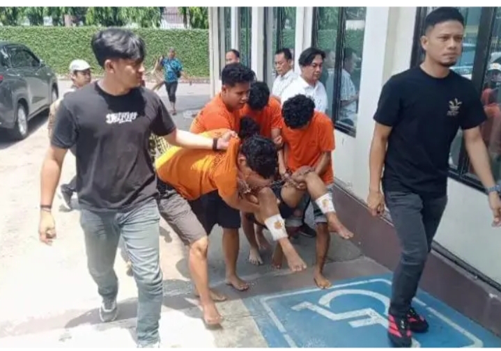 Kelima terduga pelaku masing- masing BAR, 17, Randi Putra, 19, Imanuel Valentino, 19, Bagus Kesuma Pradana, 19 dan Kornelius Angelo Tuasela, 19 tahun. Sementara dua pelaku lain yang masih dalam pengejaran pihak berwajib berinisial D dan LJ.