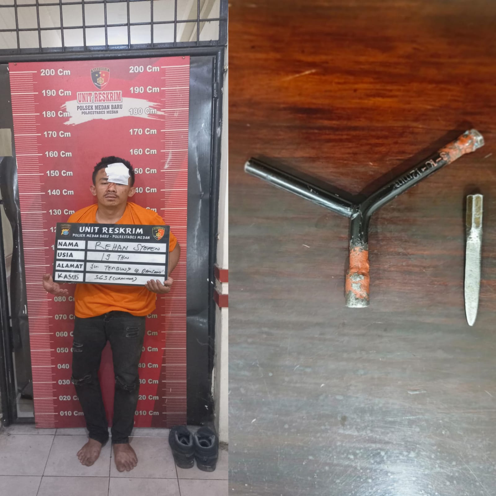 “Pelaku ditangkap Jumat (23/5/2025) sekira pukul 05.20 WIB di Universitas Darma Agung bersama barang bukti 1 unit sepeda motor Honda CB150 BK 4073 MBM warna Merah milik Mahasiswa, 1 Buah Kunci Eleter T,” kata Tambunan