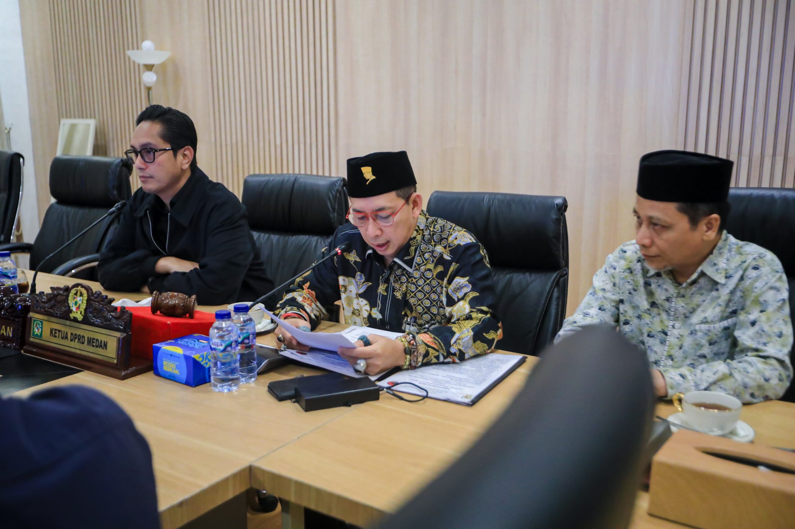 Paripurna ini dipimpin Ketua DPRD Kota Medan Wong Chun Sen dari rumah dinas Wali Kota Medan didampingi Wakil Ketua Rajuddin Sagala dan Wakil Ketua Zulkarnain.