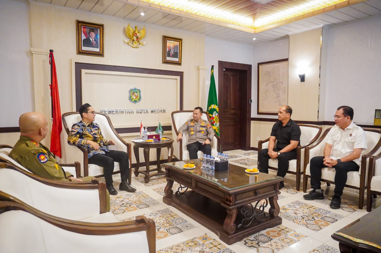 MEDAN (Berita): Wali Kota Medan Rico Tri Putra Bayu Waas menyambut kunjungan Kapolrestabes Medan Kombes Pol Jean Calvijn Simanjuntak di Balai Kota Medan, Kamis (16/10).