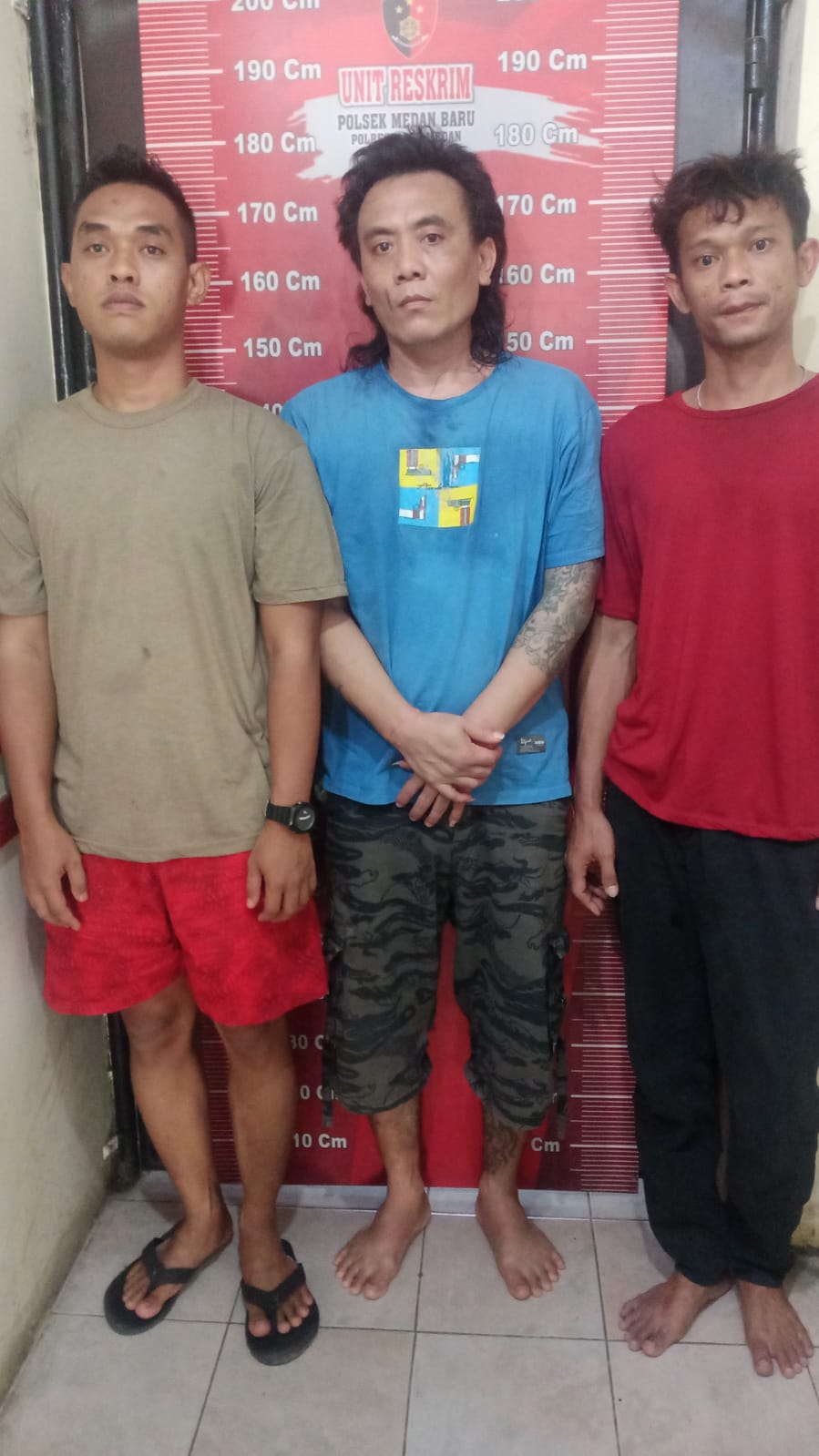 Selanjutnya ketiga pelaku beserta barang bukti digelandang ke markas komando Polsek Medan Baru guna dilakukan penyidikan lebih lanjut.