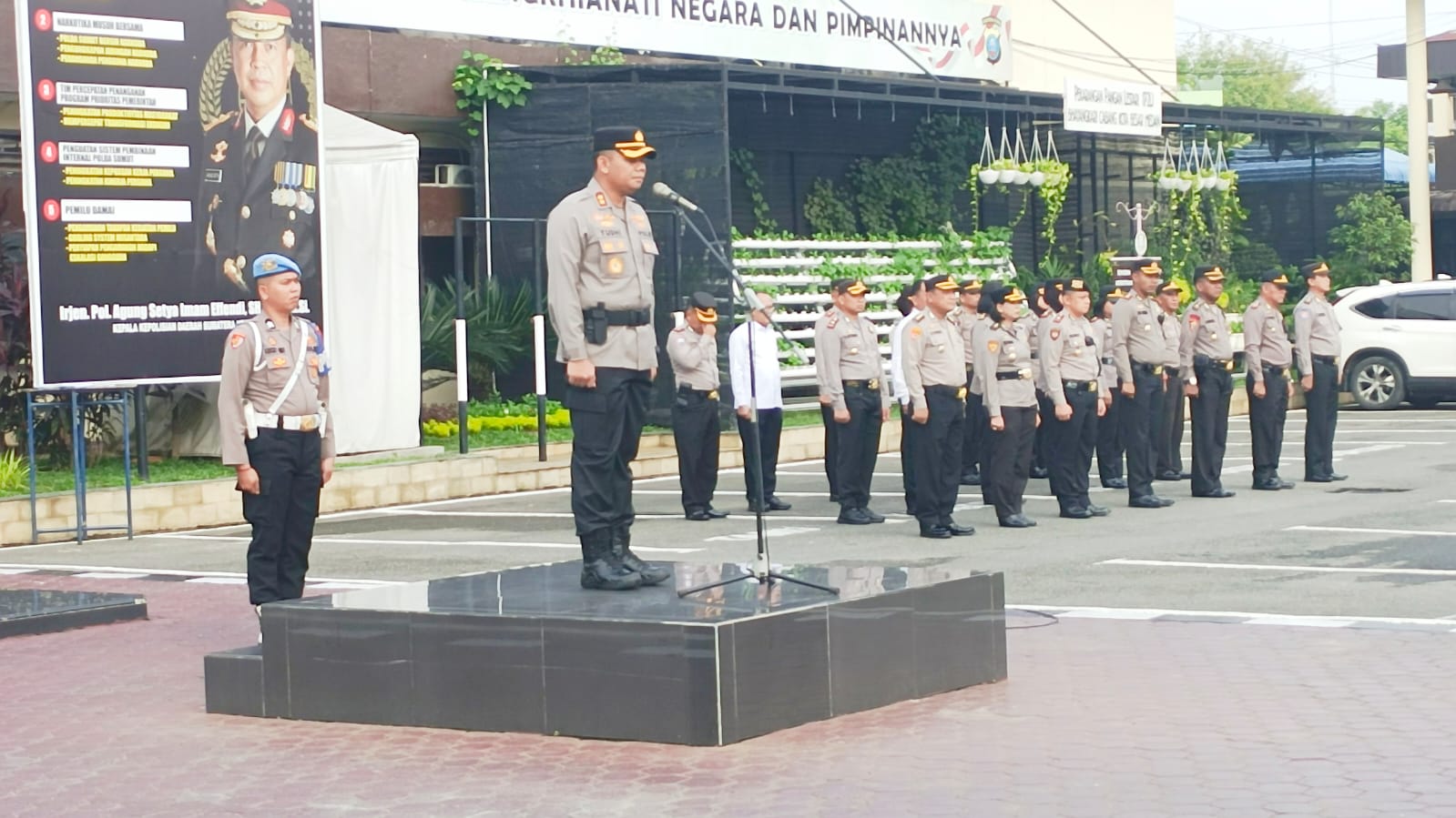 “Agar seluruh personel menjaga sikap dan meningkatkan pelayanan kepada masyarakat dalam pelayanan kita tetap humanis, mari melaksanakan arahan dan perintah pimpinan,” jelasnya.
