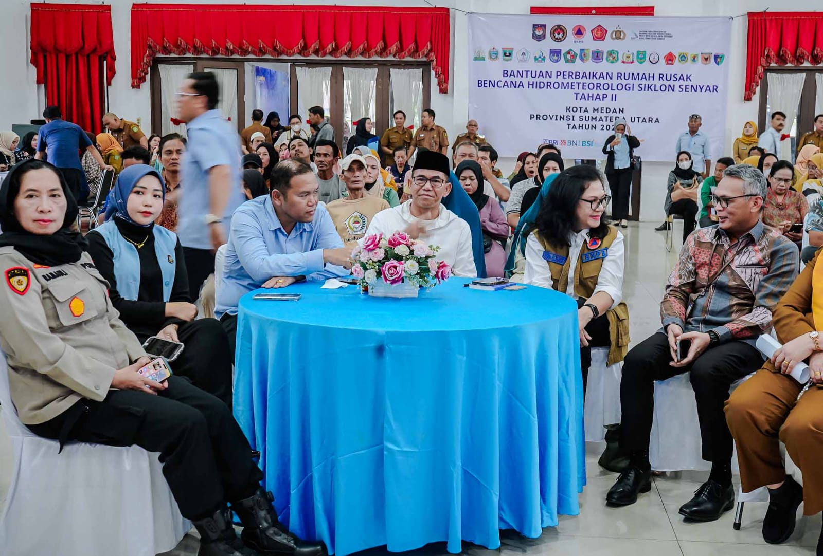 Acara penyaluran bantuan turut dihadiri unsur pengarah BNPB, Forum Koordinasi Pimpinan Daerah (Forkopimda), Kepala Badan Penanggulangan Bencana Daerah Kota Medan Yunita Sari, serta para camat se-Kota Medan.