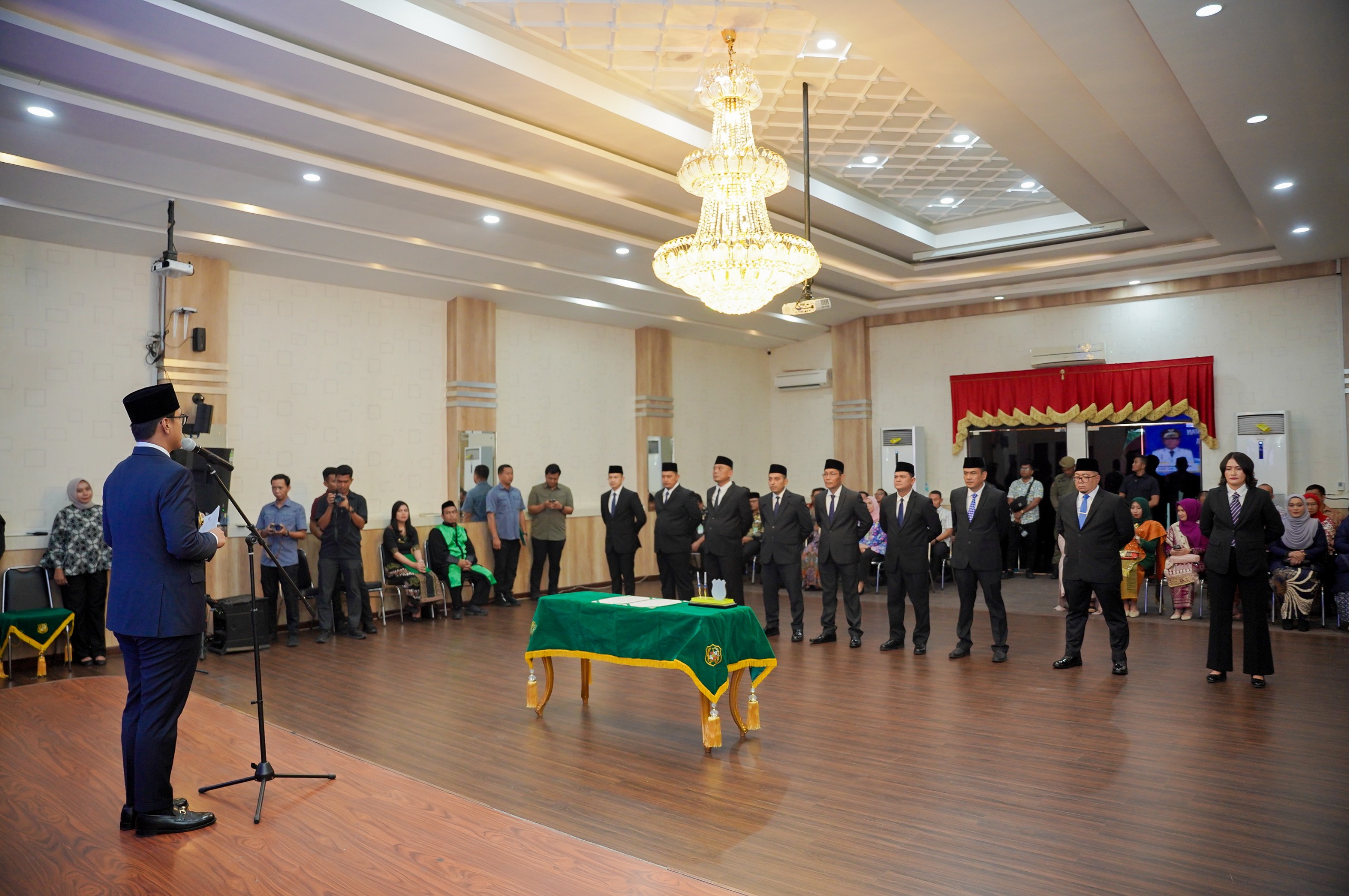 MEDAN (Berita): Wali Kota Medan Rico Tri Putra Bayu Waas melantik dan mengambil sumpah janji jabatan sebanyak 9 orang Pejabat Pimpinan Tinggi Pratama di lingkungan Pemko Medan, Kamis (21/8/2025). Dalam pelantikan yang dilaksanakan di Ruang Rapat III Balai Kota, orang nomor satu di Pemko Medan ini menegaskan, jabatan yang diamanahkan bukan sekadar kebahagiaan, tapi tentang tanggung jawab.