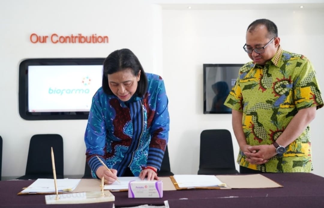 penandatanganan dilakukan oleh Direktur Medis dan Hubungan Kelembagaan Bio Farma, Sri Harsi Teteki dan Direktur Investasi dan Penyaluran Dana Indonesian Aid/ LDKPI, Iwan Nur Hidayat di Kantor Pusat Bio Farma Bandung pada Jumat, 9 Juni 2023.