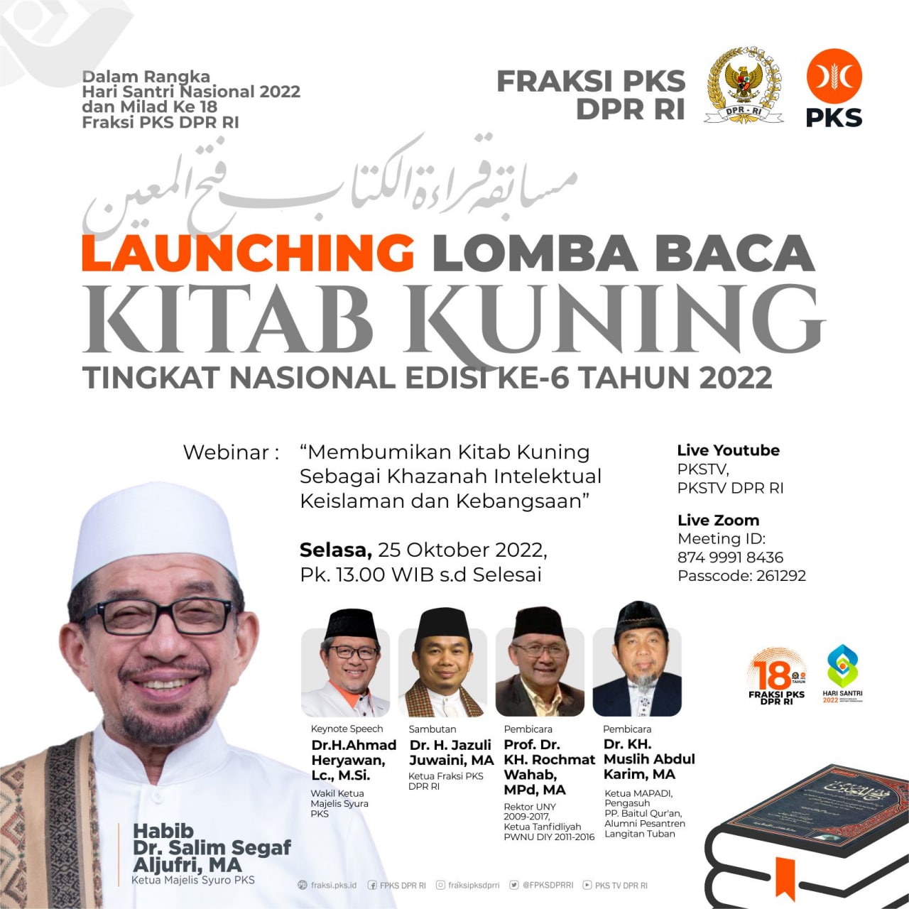 JAKARTA (Berita): Fraksi PKS DPR RI kembali menggelar Lomba Baca Kitab Kuning (LBKK) edisi ke-6 Tahun 2022.