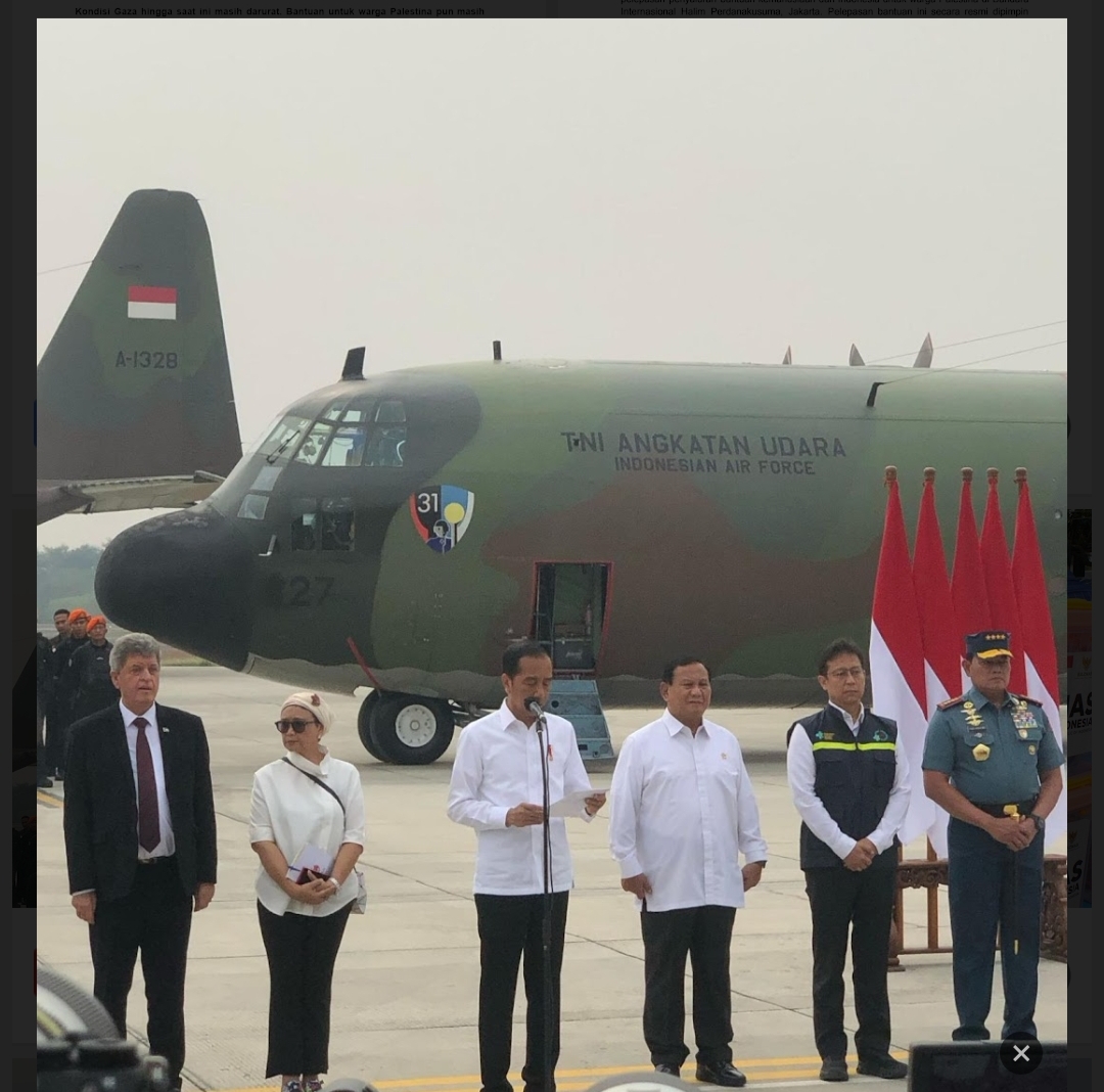 Acara pelepasan bantuan ini resmi digelar di Bandara Internasional Halim Perdanakusuma, Jakarta Jumat (3/11) yang dipimpin oleh Presiden Republik Indonesia, Joko Widodo, Duta Besar Palestina, serta perwakilan dari Kementerian Luar Negeri, Kementerian Pertahanan, Kementerian Kesehatan, Kementerian Keuangan, dan lembaga sosial kemanusiaan.