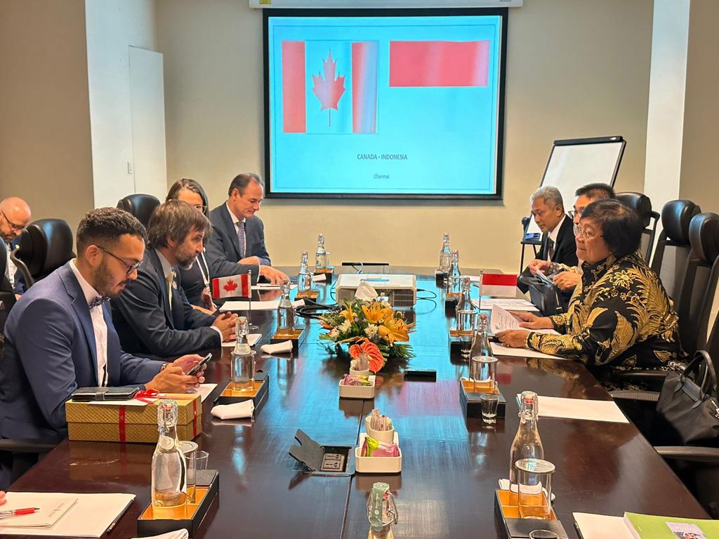 Pertemuan dengan Menteri Lingkungan dan Perubahan Iklim Kanada, Steven Guilbeault diawali dengan catatan Menteri Kanada yang memberikan ucapan selamat kepada Indonesia yang sudah mulai menerapkan nilai ekonomi karbon.