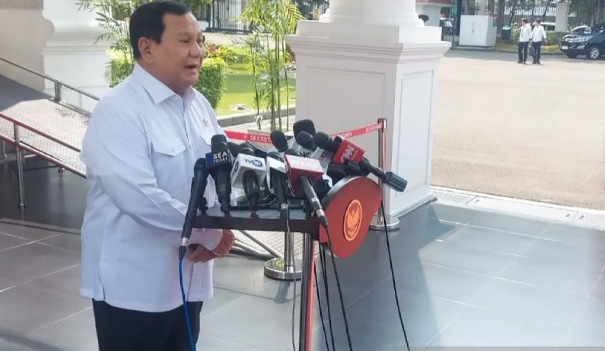 Menteri Pertahanan Prabowo Subianto memberikan keterangan pers di Istana Kepresidenan Jakarta, Kamis (6/6/2024). (ant)
