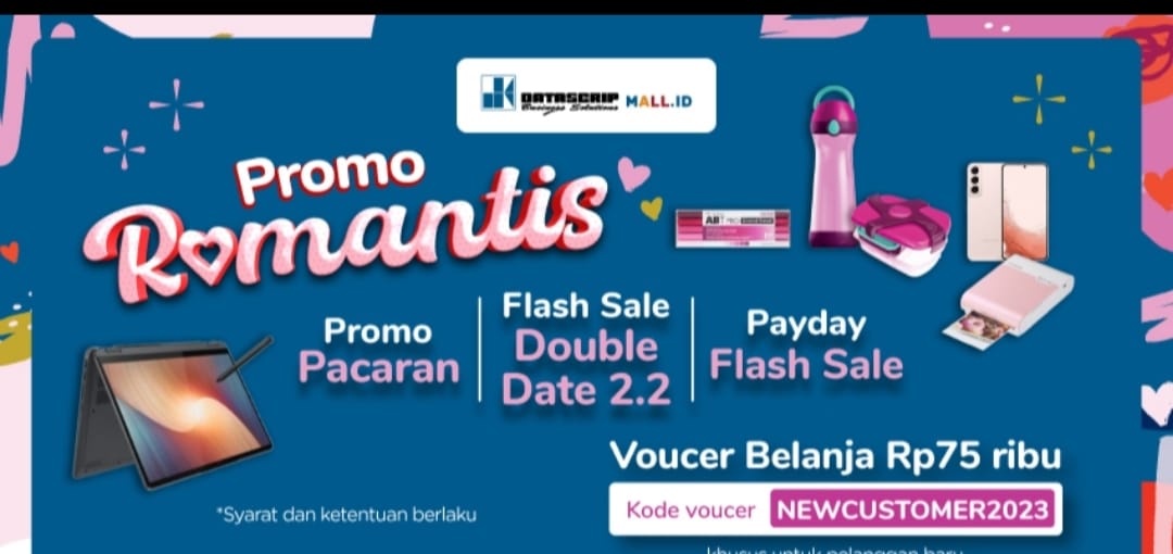 Di bulan ini, DatascripMall.ID hadir dengan memberikan berbagai promo menarik bertema “Valentine’s Day”, mulai dari Promo Romantis, Promo Pacaran, Flash Sale Double Date 2.2, Payday Flash Sale, hingga voucer khusus untuk pelanggan baru di bulan Februari 2023.