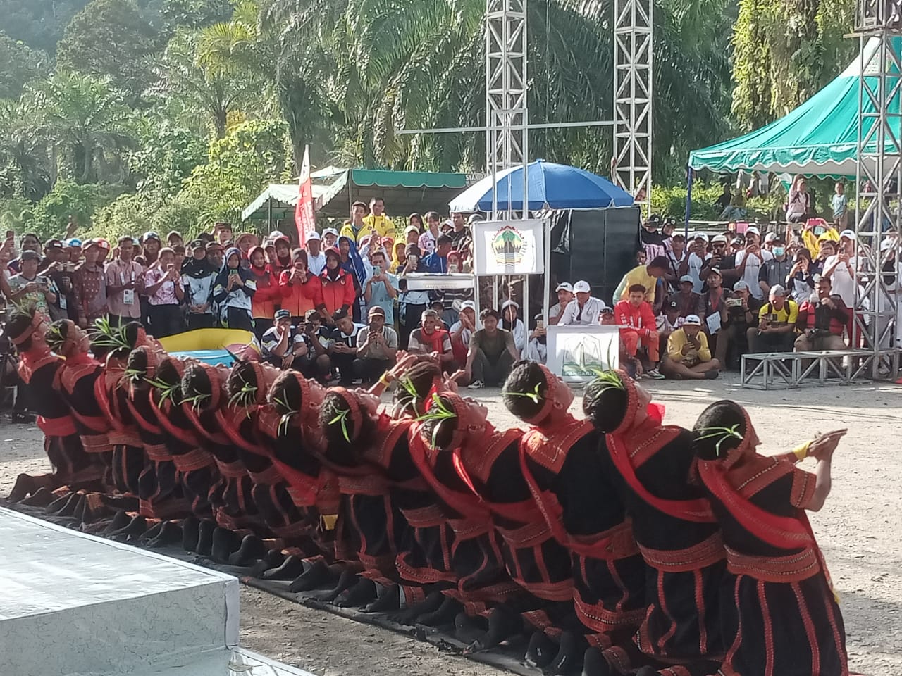 Sanggar Tari Saman Kute Kuning 1 Kecamatan Bambel tampil pada penyerahan medali Cabor Arung Jeram di Kawasan Wisata Jambur mamang Kute Tanjung, Venue Arung Jeram Sungai Lawe Mamas Kamis (19/9/2024) sore..
