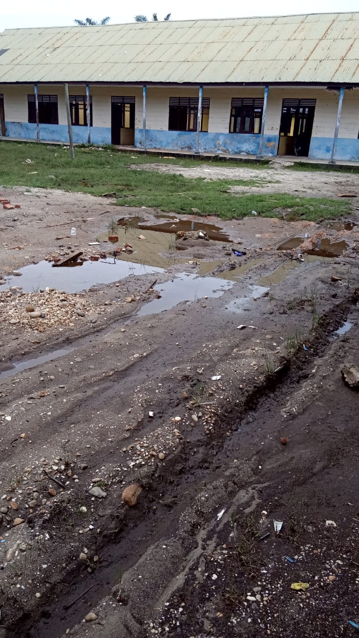 “Khusus, halaman Sekolah, disaat hujan deras hampir semua halaman tergenang hingga menyisakan becek, kita jadi kesulitan diwaktu melakukan upacara maupun senam kesegaran jasmani setiap hari nya”Kata Rosmadi,S.Pd selaku Kepala sekolah, Rabu (3/11).