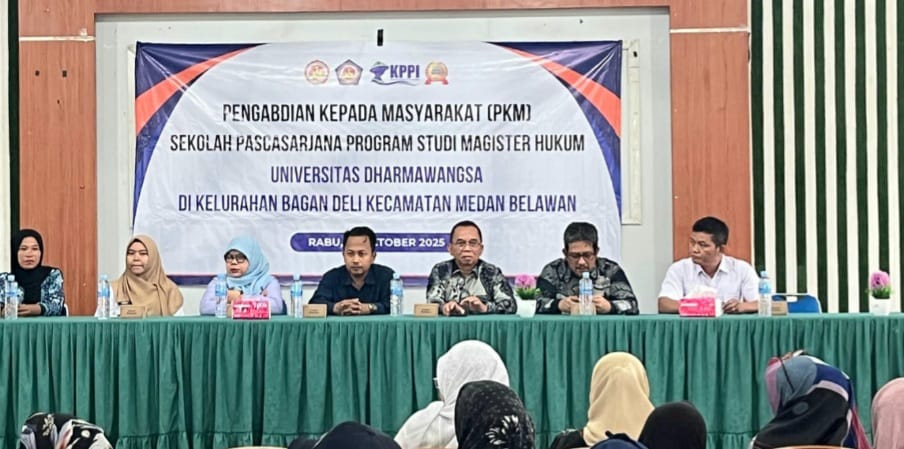 Menyikapi hal itu, Pascasarjana Universitas Dharmawangsa (Undhar) turun langsung ke tengah masyarakat lewat kegiatan pengabdian masyarakat di Aula Kantor Camat Belawan, Rabu (22/10/2025).