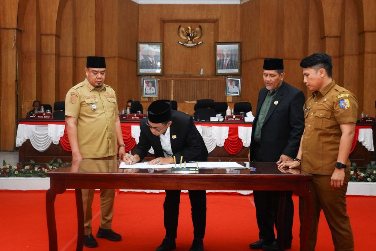 BATUBARA (Berita) Pemerintah Kabupaten Batubara bersama Dewan Perwakilan Rakyat Daerah (DPRD) Kabupaten Batubara secara resmi menandatangani nota kesepakatan dalam rangka rapat paripurna laporan badan anggaran terhadap Kebijakan Umum Perubahan Anggaran (KUPA)–Prioritas dan Plafon Anggaran Sementara (PPAS) P. APBD Tahun Anggaran 2025, Kecamatan Lima Puluh, Senin (15/9/2025).