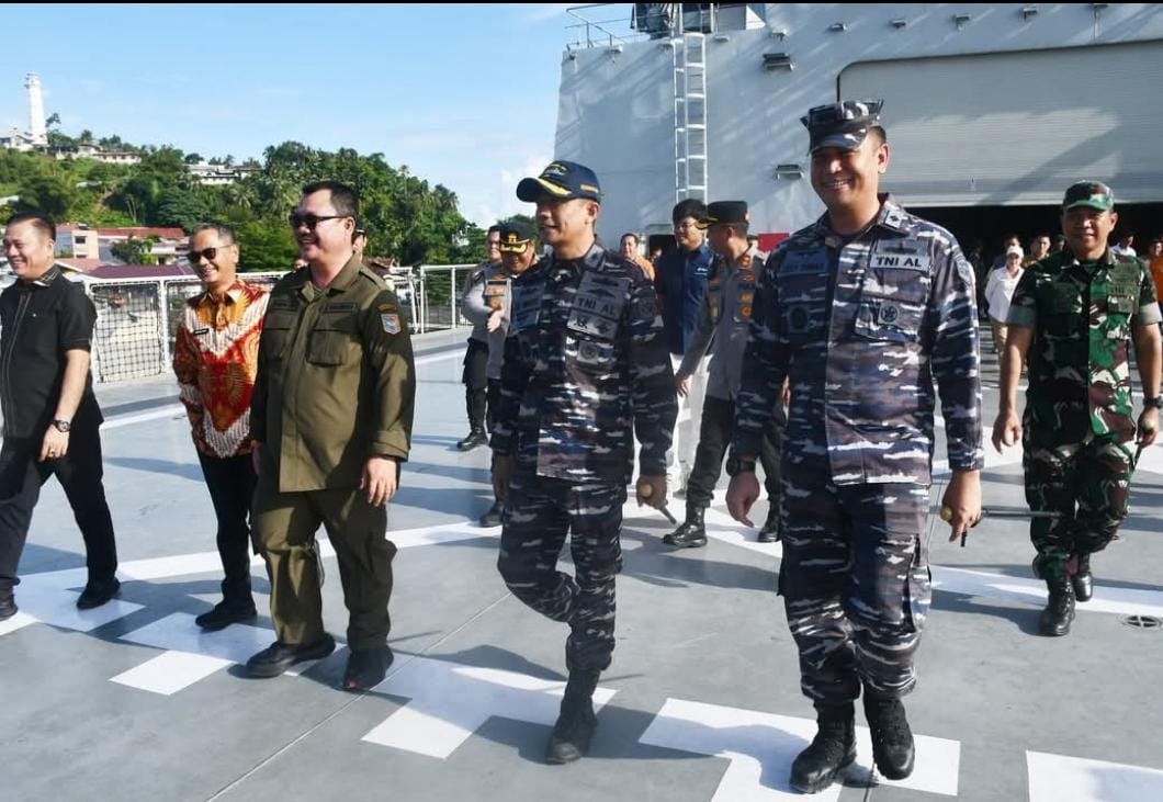 Bupati Nias Sambut KRI Semarang-594 Bawa Bantuan Kemanusiaan Untuk Pulau Nias