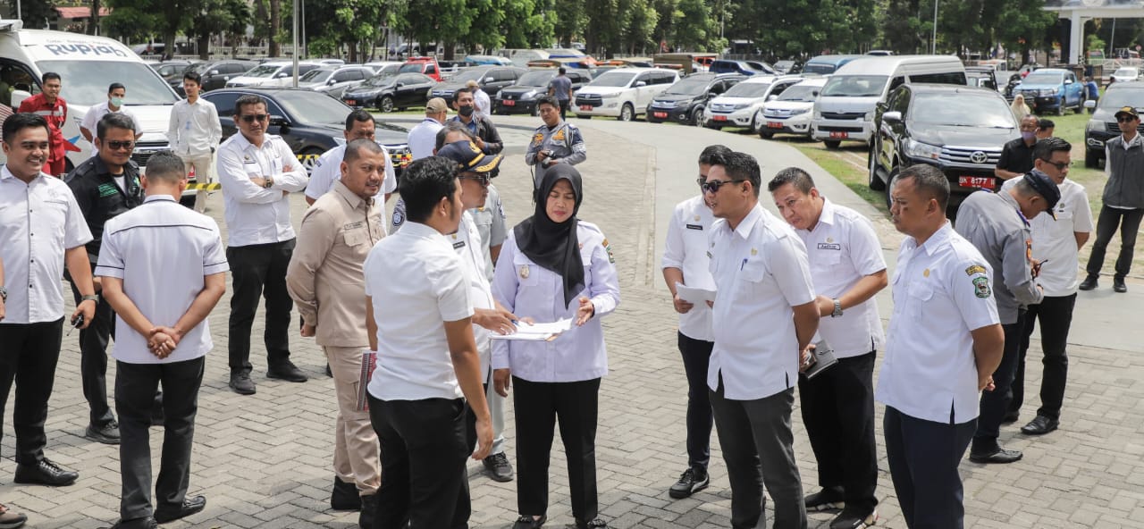 PEMATANGSIANTAR (Berita): Wakil Wali Kota Herlina mewakili Wali Kota Wesly Silalahi mencek atau melakukan pemeriksaan terhadap 205 unit kenderaan dinas roda empat Pemko Pematangsiantar di lapangan Adam Malik, Rabu (19/3).