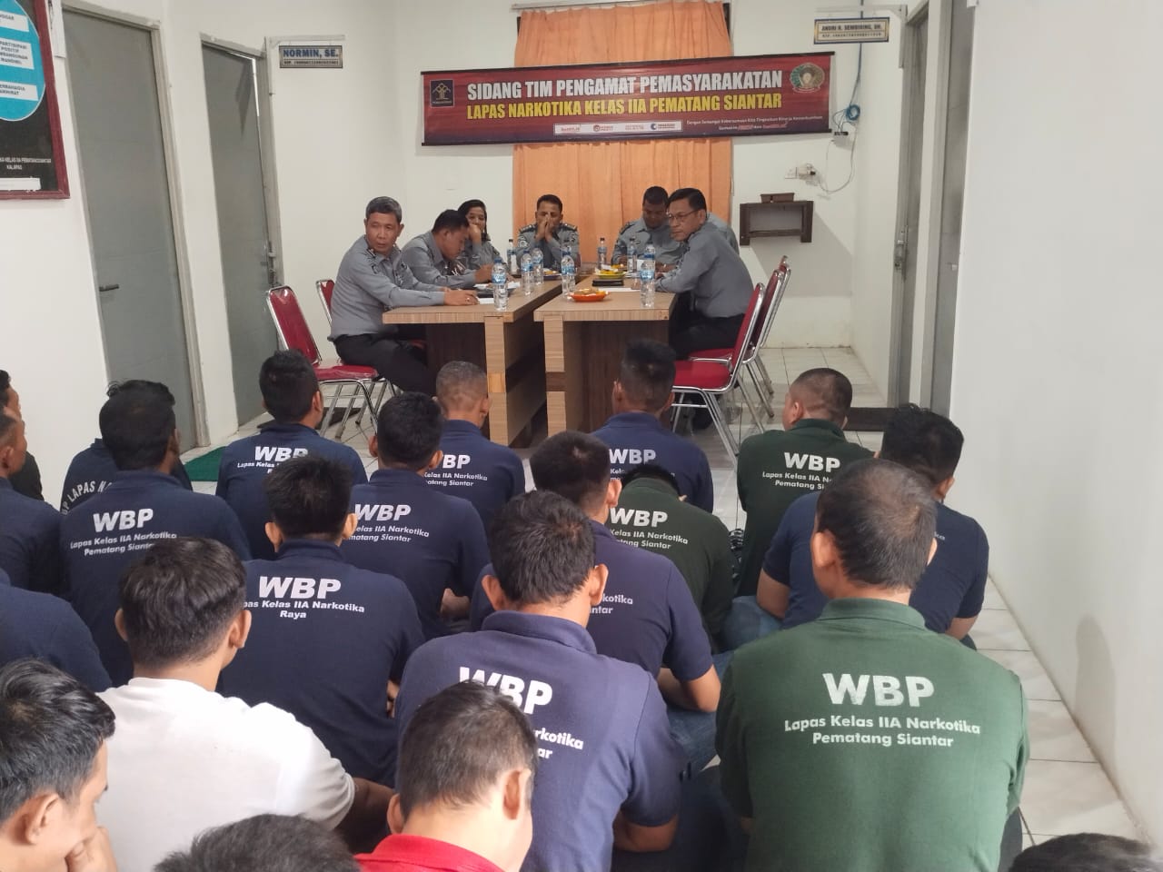 SIMALUNGUN (Berita): Sebanyak 38 Warga Binaan Pemasyarakatan (WBP) di Lapas Narkotika Kelas IIA Pematangsiantar mengikuti sidang Tim Pengamat Pemasyarakatan (TPP) Selasa (12/11/202).