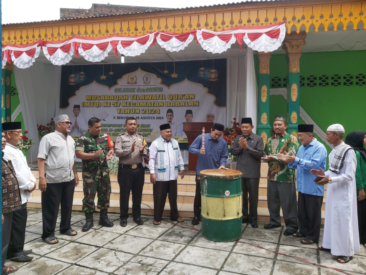 MTQ ke-57 Tingkat Kecamatan Babalan dibuka langsung Camat Babalan Restra Yudha S.IP didampingi KUA Babalan Azhar SHi, Ketua IPHI Babalan Ismed Sholihin, Ketua MUI Babalan Drs Khaidir Siagian, Tokoh agama Kh H Ramli Safruddin, Ketua BKM Masjid Raya P.Brandan Iriansyah Nasution, Ketua BKM Ubudiyah H Syahrum Hakim, perwakilan Polsek P.Brandan, perwakilan Danramil 13 PB ,Ketua Muhammadiyah, Alwasliyah, dan NU Kecamatan Babalan.